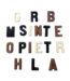 Small chocolate letters in milk chocolate decorated with white and dark chocolate. Letters cannot be chosen they come randomly in a transparant box.